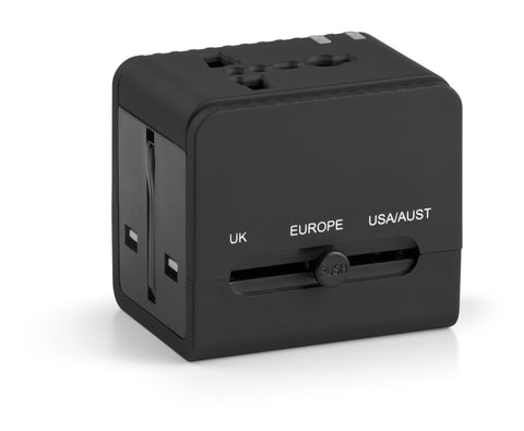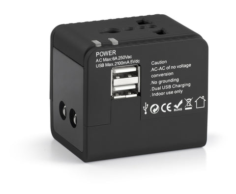 The Adaptive includes dual USB output ports and a set of four AC plugs with prongs that fit different electrical outlets around the world. This is the perfect gift to ensure power connectivity when traveling abroad.