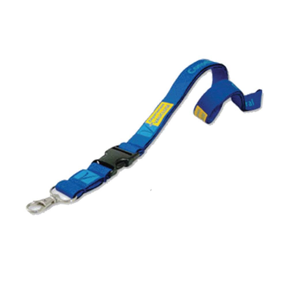 This is more of an economy strap, still durable but the strap is made of a nylon material. They are very sturdy, and well made, they are also soft and comfortable around your neck. It have safety clip & metal hook.