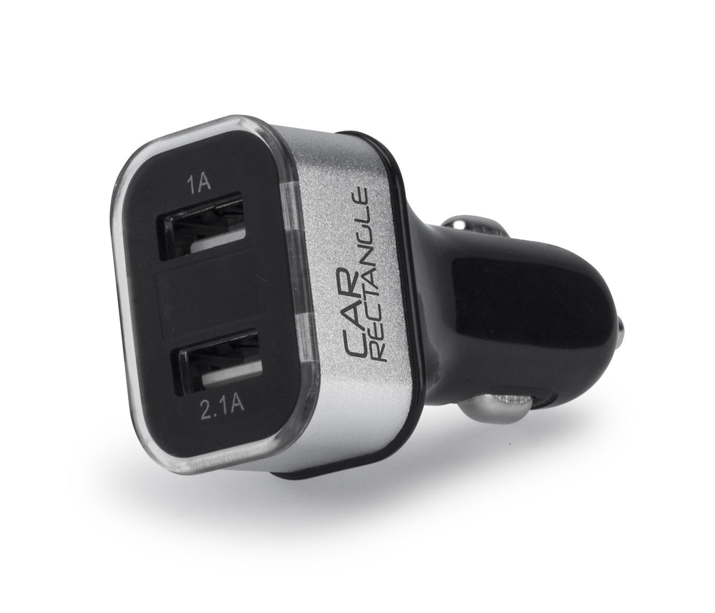 Dual USB port car charger with intelligent chip prevents overcharging.Input: 12V - 24V Output: 5V/3.1A(single USB port) 5V/1A + 2.1A (both USB port).