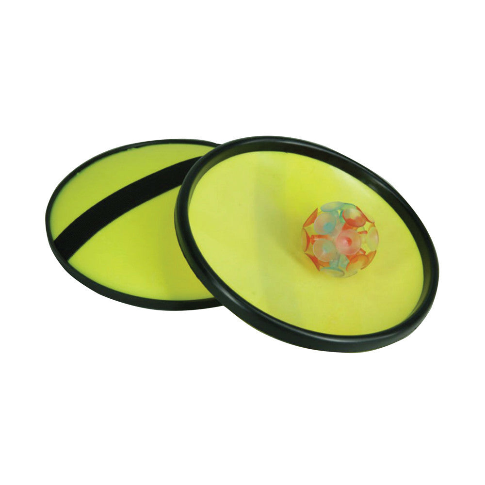 This fun tossing and catching game includes 2 self-stick mitts and 1 ball. Two players simply stand a distance apart, toss the self-stick ball, and try to catch it on their self-stick mitt. The Toss and Grip game provides a great way to develop hand-eye coordination. Its perfect for beach, playground, or backyard use. Suitable for playing on beach and outdoor as sports games for adult and children.