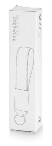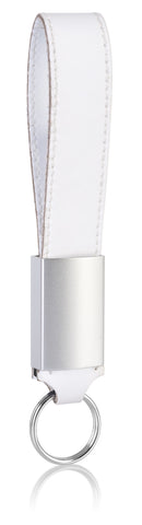USB flash drive with key ring, genuine leather strap and metal plate.