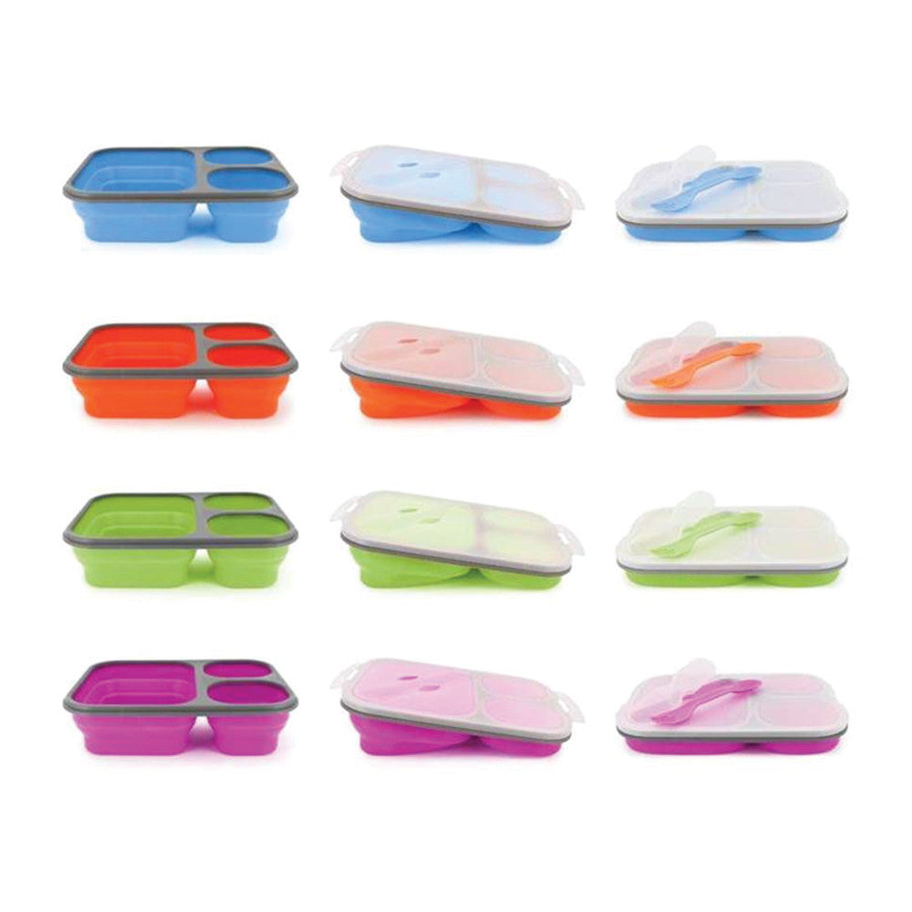 Our silicone collapsable lunch boxes are the perfect lunch box for children and adults alike. Three deep compartments allow you to pack your child's lunch without all the nasty plastic wraps.