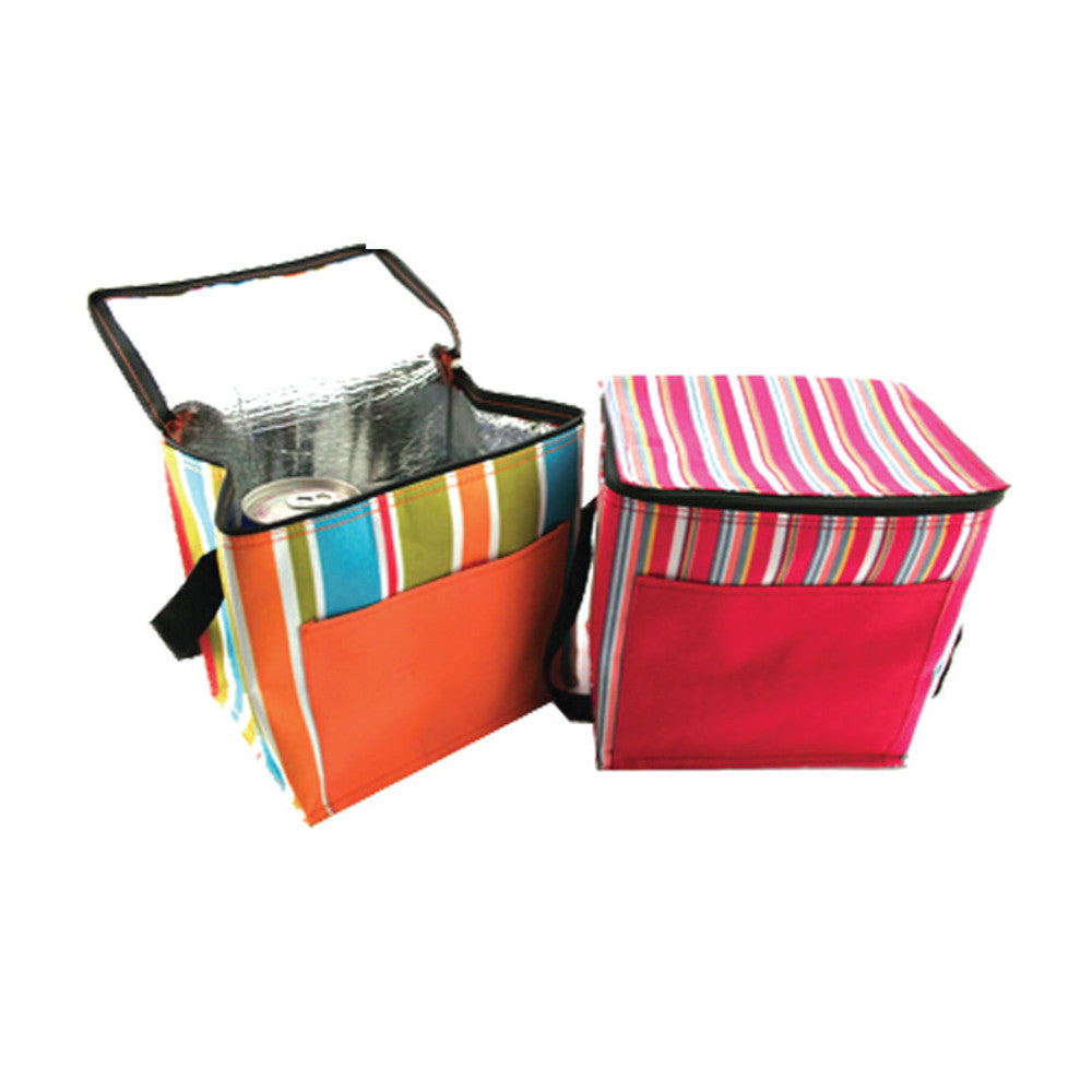 Keeps food cool or warm, Easy to carry strap handle. Slim shape that fits into handbag or backpack. Wide base gusset for carrying cans.