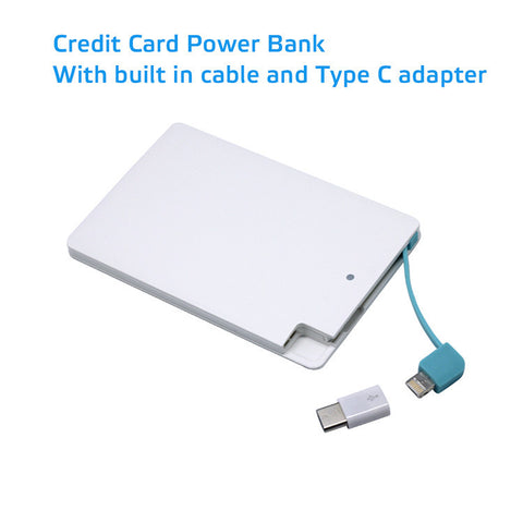 This Credit Card powerbank is Portable, user friendly and build-in cable and type C adapter. Suit for all kinds of mobile phone.