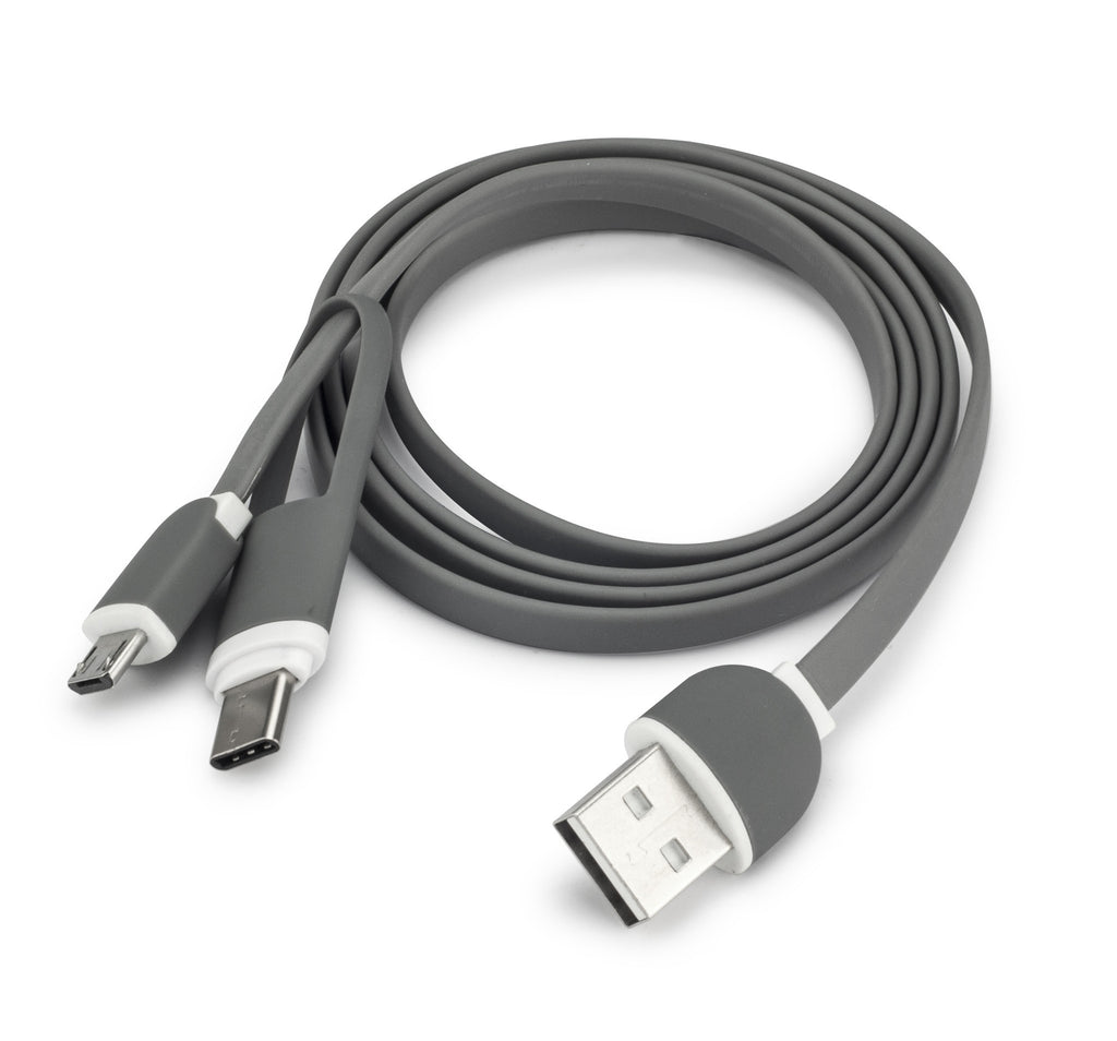 Charging cable with data transfer. Input port: USB; Output port: micro USB / type-C USB. Total cable Length: 1m