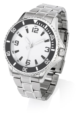 Analog gents watch - high accuracy quartz movement - alloy case - SS metal band - showerproof.