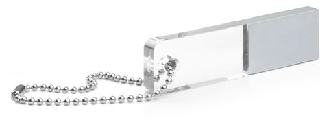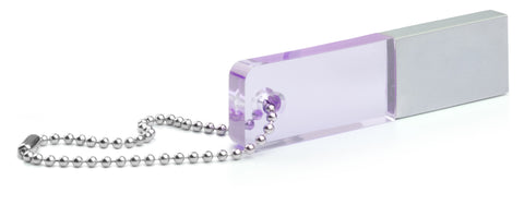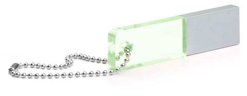 Slim aluminium USB flash drive with acrylic light up top part. The top part light up when the flash drive is inserted in a usb portal.