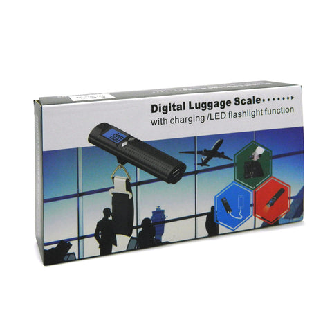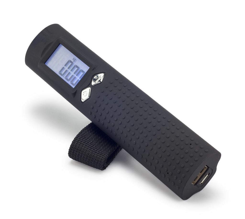 3 in 1 digital luggage scale with integrated 2600 mAh powerbank and flashlight. Max capacity 50 kg with accumulative memory function. Unit in kg lb, oz or g. Output 5V/1A, input 5V/800 mAh. Including micro USB cable. Don't risk extra fees from the airlines for overweight baggage.
