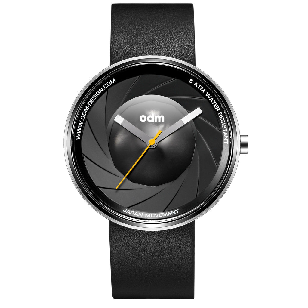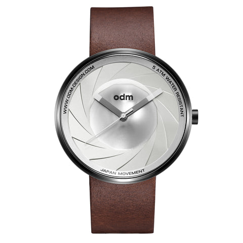 High accuracy quartz movement, metal case and leather strap. 5 ATM.