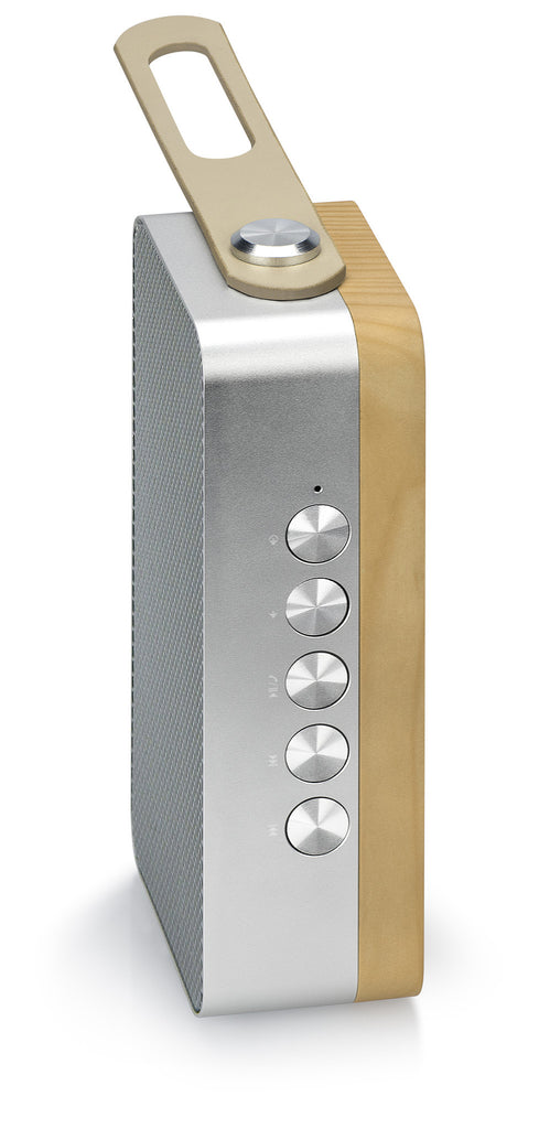 Sound Block is a beautiful wooden alumium speaker with leather handle for portability. It equipped with Bluetooth V3.0 pairing for listening to music and taking on the phone. 2000mAh lithium battery can play up to 8 hours on medium volume levels under an excellent quality sound. Simply charge it using the included micro-USB charging cable.