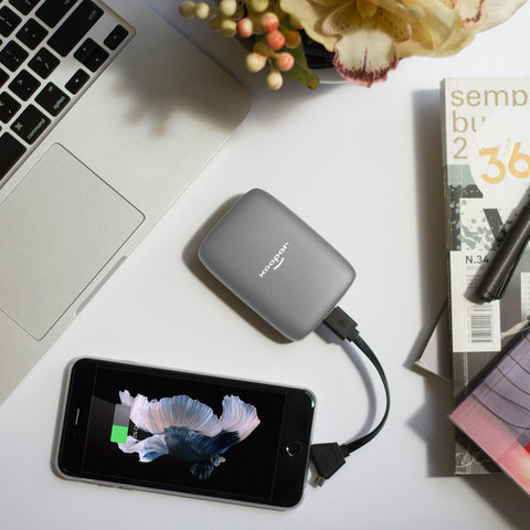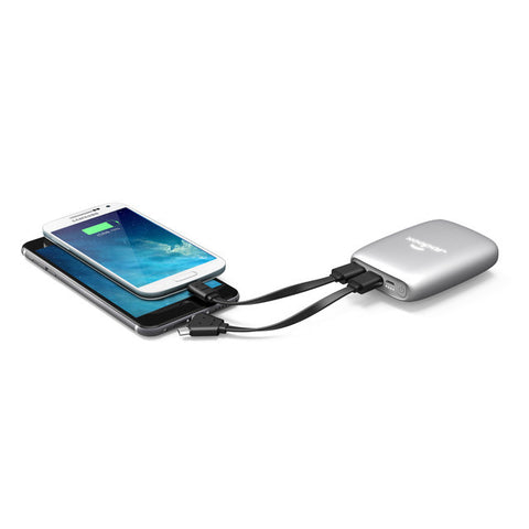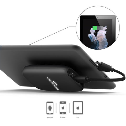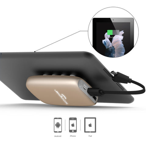 Portable external power bank for smartphone and tablet PC, Grade A Li-ion rechargeable battery, 2.1A output power provides express battery charging, Overcharge protection, Dual USB Ports, Smart Suction cup for easy carry and use, Lighting Panel for Corporate logo.