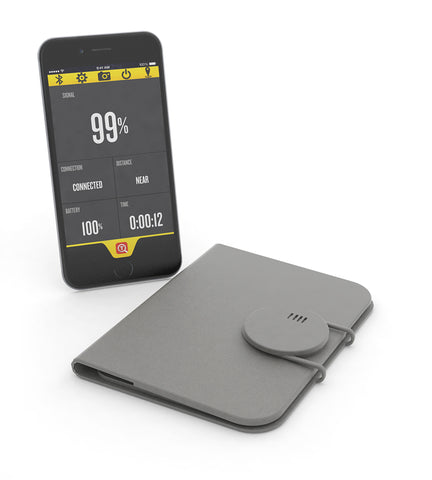 The Trace It Passport is a bluetooth module with passport holder. Compatible with a free app for your smarphone or tablet (iOS and Android). The item has five functions: 1- Track and Find, track the location of the module 2 - Remote shutter, remote control for your camera 3 - Anti lost alarm, when the module goes out of range an alarm goes off 4 - Phone finder, press the button on the module to find your phone 5 - Lost location history, if the connection is broken a pushpin will appear on the map.
