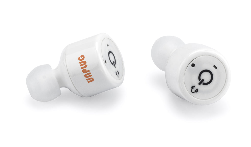 A whole new music experience brought to you by Unplug. Bluetooth 4.2 wireless earphone, which without a single wire, the two earbuds communicate with each other and a smartphone completely wirelessly. Wireless range up to 10m and playback hours to 2.5 hrs.